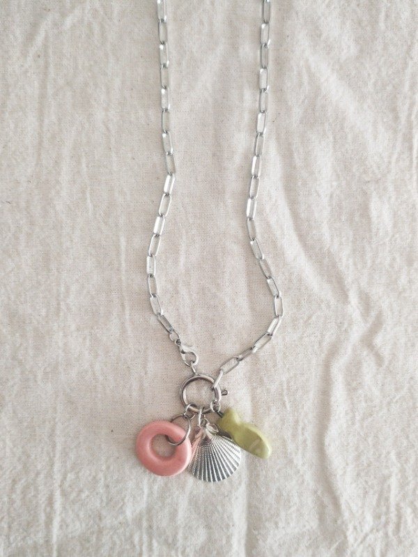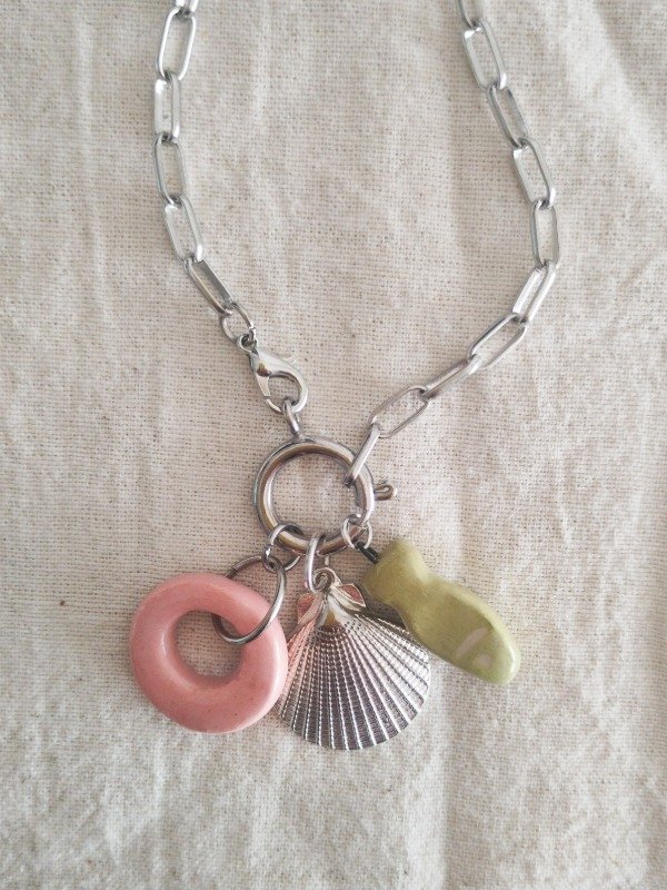 • Material: cadena de acero quirúrgico + dije de cerámica con esmalte cristal + dije de acero.