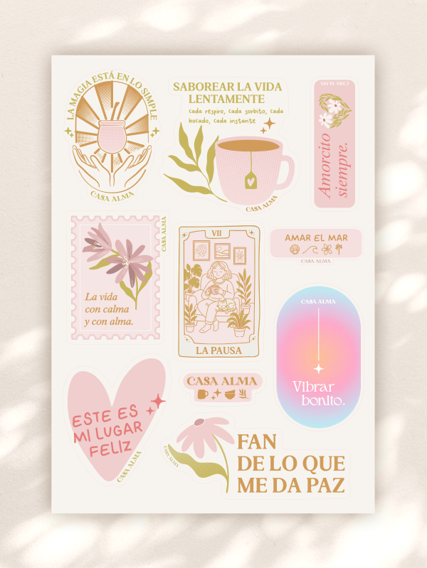 • Diseños exclusivos de Casa Alma Deco. Plancha que incluye 10 stickers.
